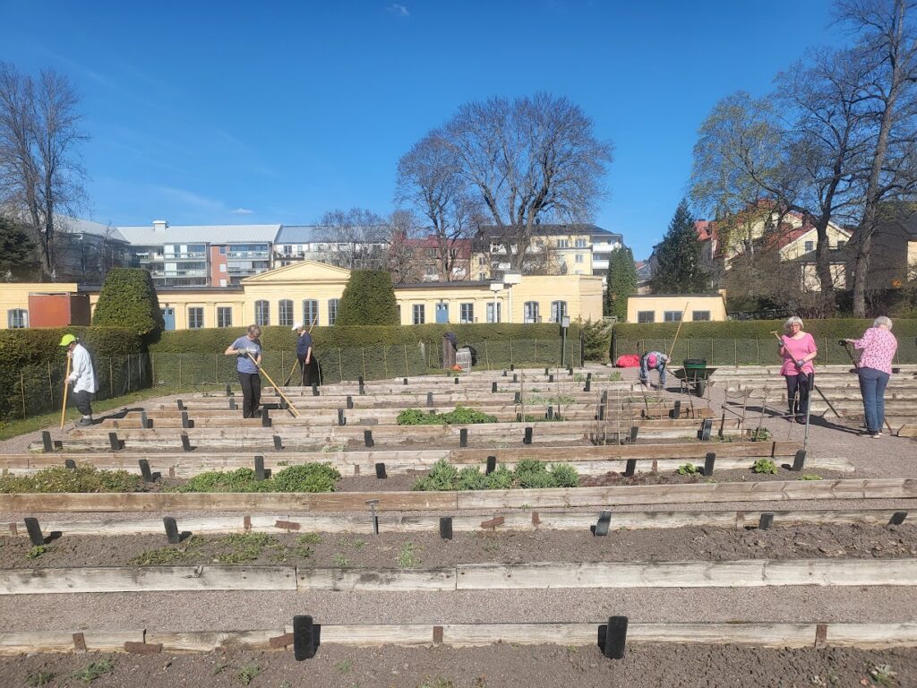 Som vanligt fick vi strålande soligt och varmt vårväder under årens arbetspass. Rekordmånga Föreningen Linnés Vänner deltog (23) med liv och lust i årets vårstädning (vi skyfflade, krattade och bar ut skyltar till de olika kvarteren och sofforna fick en vårrengöring) med trevligt efterföljande fika. Tack till akademiträdgårdsmästare Tomas Zicha!